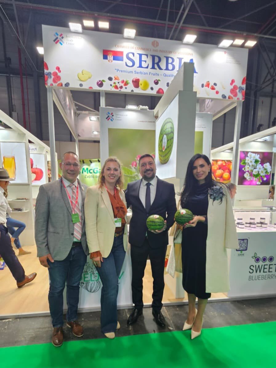 At the international fruit and vegetable fair "Fruit Attraction 2025", held in Madrid from September 30 to October 2, in organization by the Chamber of Commerce of Vojvodina, the Republic of Serbia was represented through a national exhibition stand showcasing products from 12 companies operating in the fruit production sector.